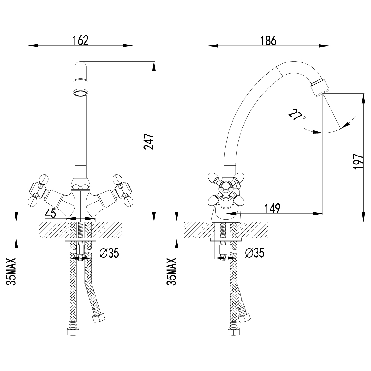 - Гибкая подводка 1/2" 35 см